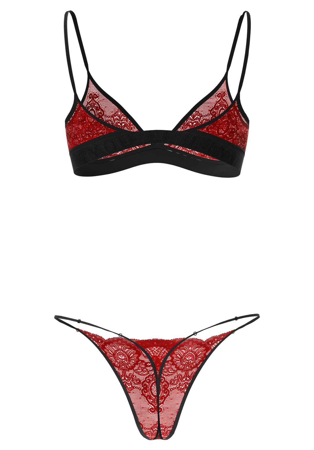 Valentine's Choice - Прозрачен бордо интимен комплект с прашки, регулатори с 24-каратово златно покритие