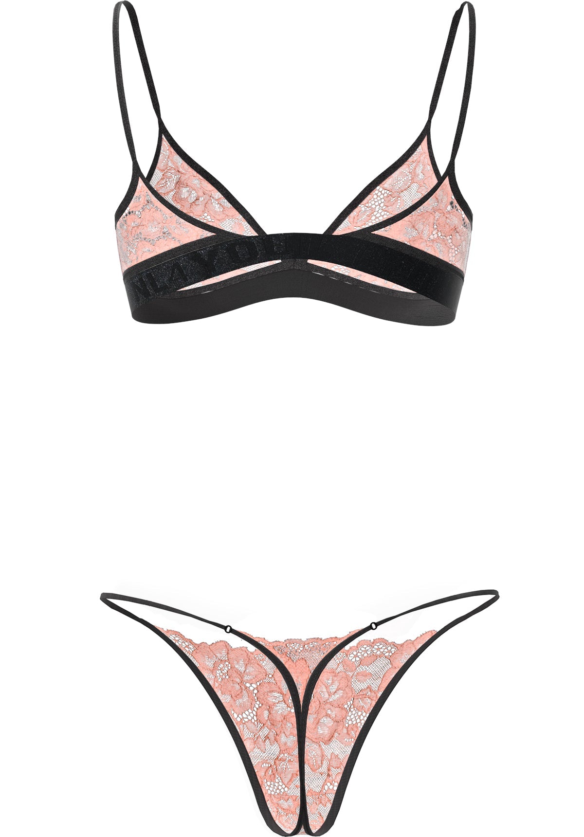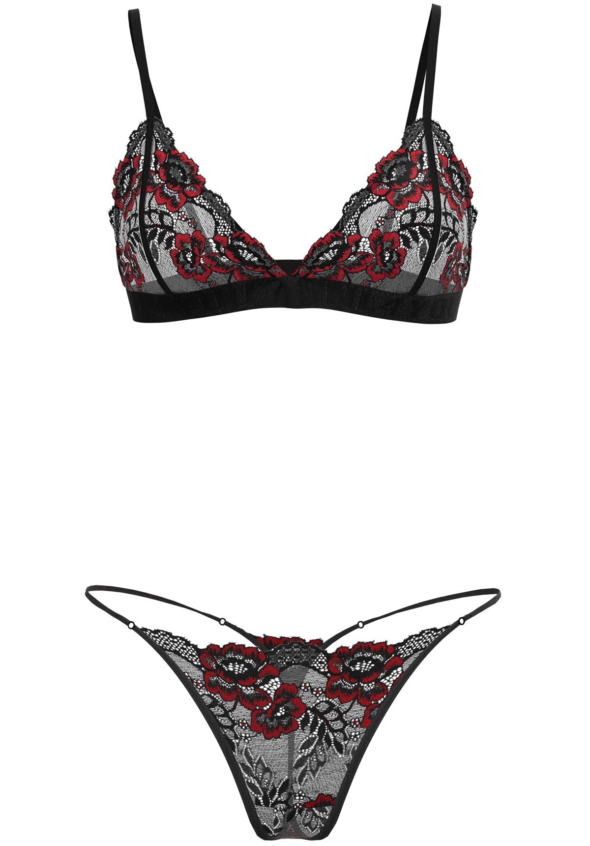 One Night Only - Прозрачен черен интимен комплект с дълбока бикина, регулатори с 24-каратово златно покритие