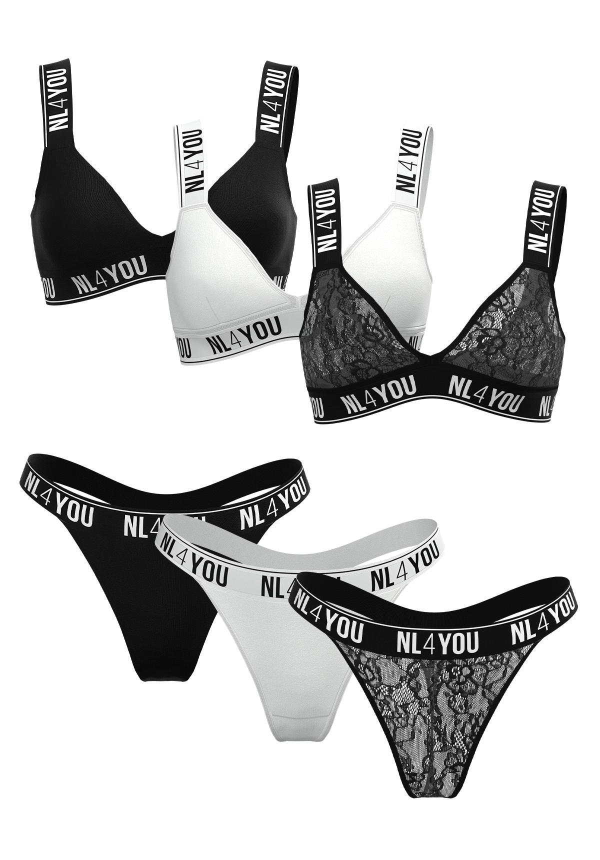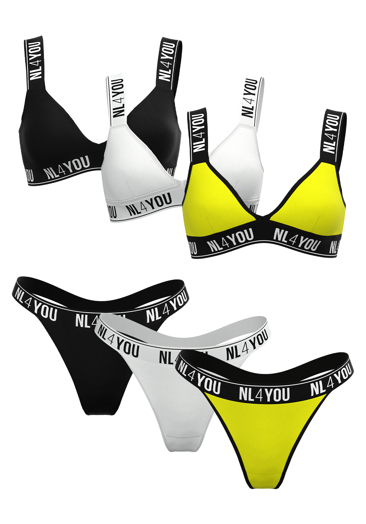Запознай се с новото ти любимо бельо! Ще се влюбиш в нашите секси класически триъгълни комплекти! Много елегантен и изчистен дизайн, който подчертава женсите форми! Уникален комфорт, за който само мечтаеш! Безбанелени сутиени с меки чаши и сваляеми подплънки, широк подгръден ластик и презнди и преззрамлънки подкрепа на бюста! Прашки с широк еластичен ластик, който можете да носите високо или ниско на талията! Висококачествени, еластични, меки и дишащи материи, които ще галят кожата ти!